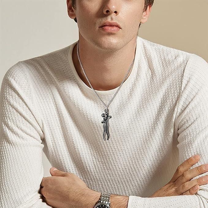 Silver and Black Hug Couple Chain Pendant